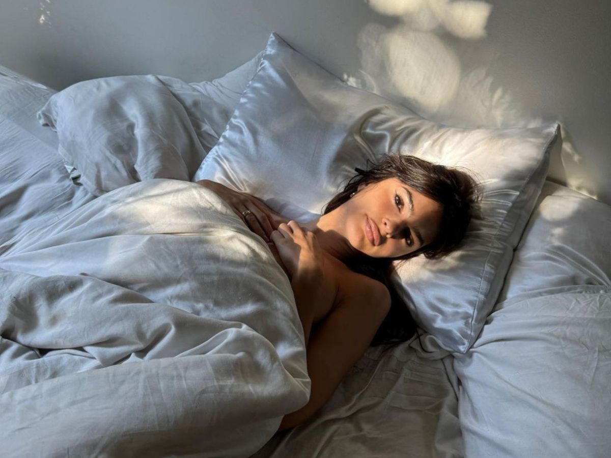 In her recent Instagram post, Emily shared a series of sultry photos taken from the comfort of her bed. The supermodel appeared effortlessly alluring as she posed in various states of relaxation and allure, highlighting her incredible figure. Wearing a various combinations from nothing to cozy loungewear, she showcased her stunning features, including her signature sultry gaze and famous pout.