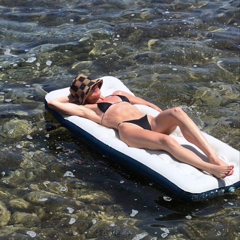 At 39 (and about to turn 40 on July 25), VanSanten’s making the final stretch of her 30s look absolutely effortless. In a bold black string bikini, she showed off abs you could grate cheese on, legs that go on forever, and a vibe that screams confidence. Lounging on a float in serene waters, she completed the sizzling summer look with a chic checkered bucket hat.