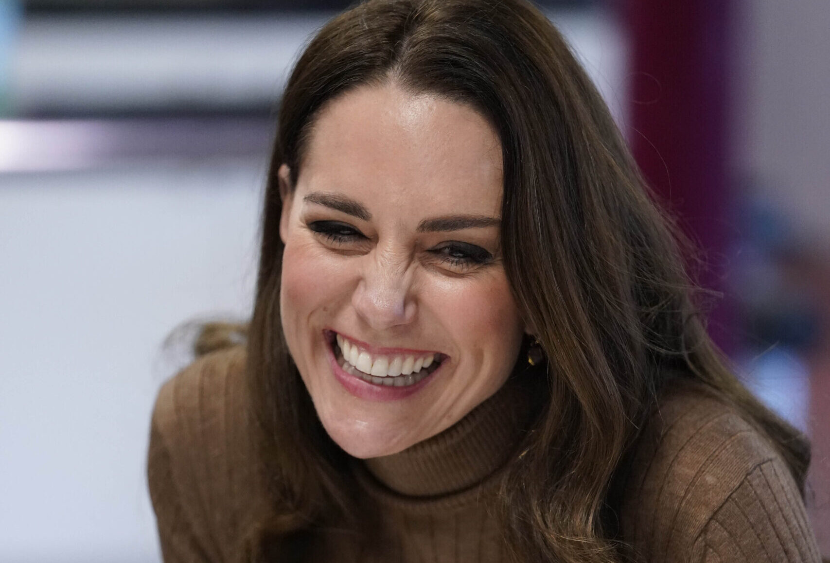 The coffee-colored rib-knit skirt from Iris & Ink had the look of Middleton’s favorite pleated skirts. In a similar fashion, she wore the skirt with a tailored roll-neck sweater.