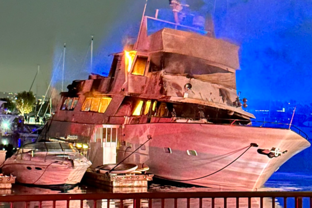 On Wednesday at approximately 8:30 p.m., firefighters swiftly responded to the docks at Basin A, where the boat “The Admiral” was engulfed in flames, as reported by the Los Angeles County Fire Department. Crews attempted to combat the blaze from both land and water, but containment efforts proved challenging.
