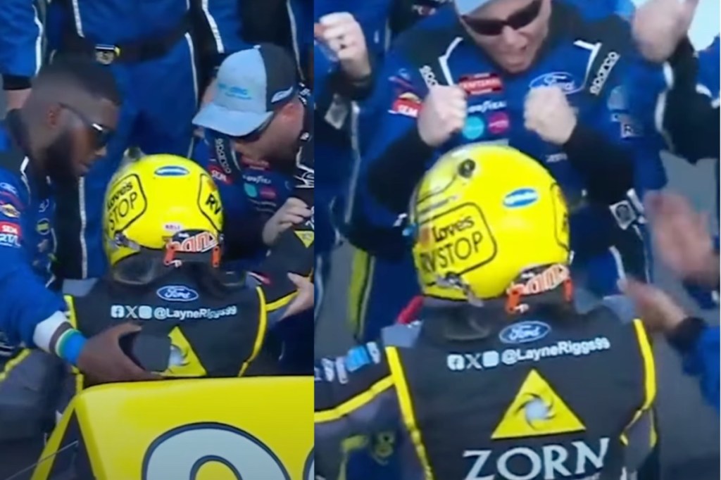 However, Riggs’ NASCAR crew was able to pop the overjoyed shoulder back into place. The celebration continued immediately.