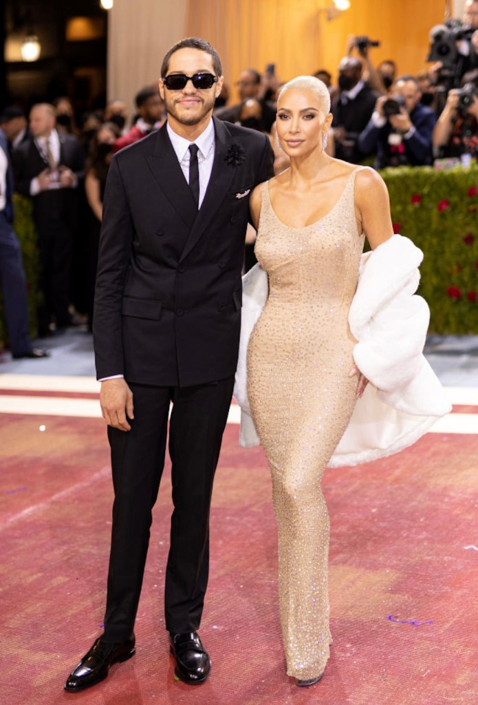 Davidson, 31, made a stylish statement alongside Kardashian at the Met Gala in a Dior tuxedo, but opted for a more laid-back look on Thursday. The comedian donned a white tank top under a sheer button-up shirt, paired with tan slacks and black shoes. Completing the outfit, he accessorized with sleek black sunglasses and posed confidently with his arm around Hewitt.