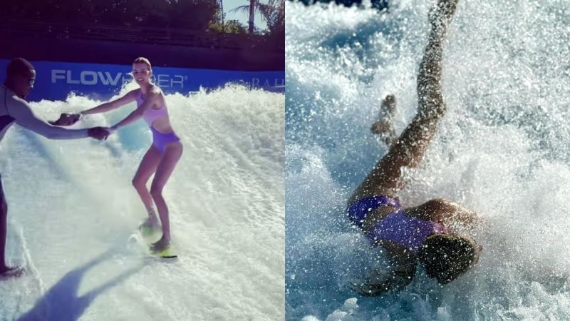 In the video Ivanka included in the post, she is seen effortlessly riding the surfboard during a second attempt—with the help of a wave simulator employee, of course.